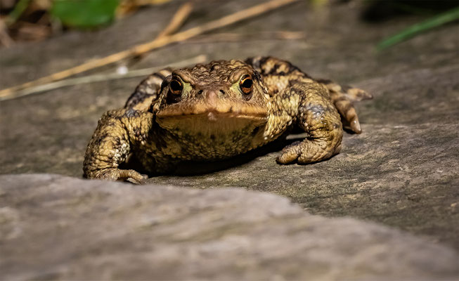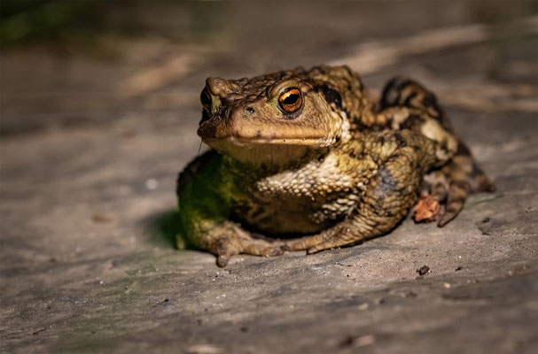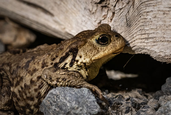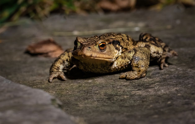 Die Haut der Erdkröte ist trocken und mit auffälligen, dunklen Warzen bedeckt. Diese Warzen, die auch als „Drüsenhöcker“ bezeichnet werden, enthalten spezielle Drüsen, die eine toxische Substanz namens Bufotoxin produzieren. Die Kröten nutzen diese als Verteidigungsmechanismus gegen Fressfeinde.