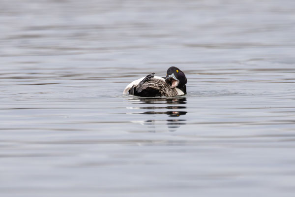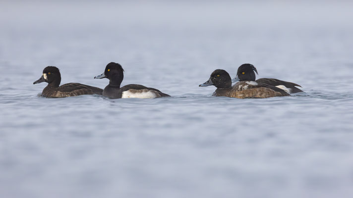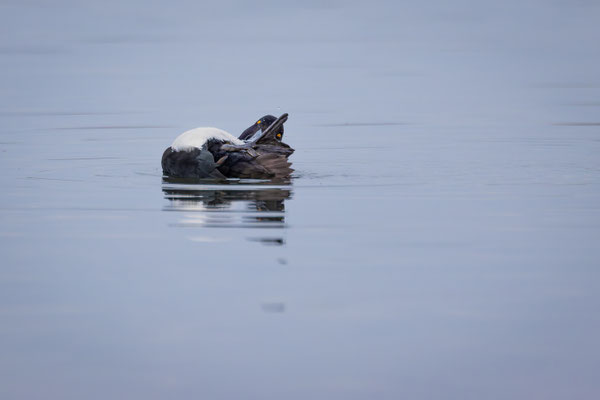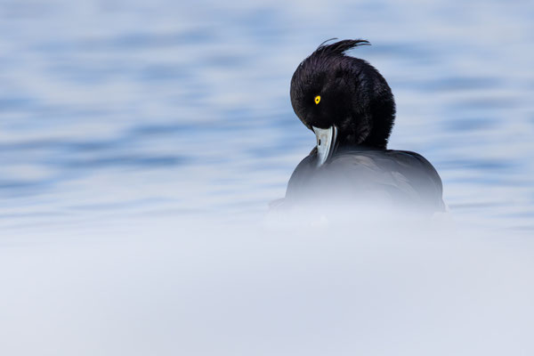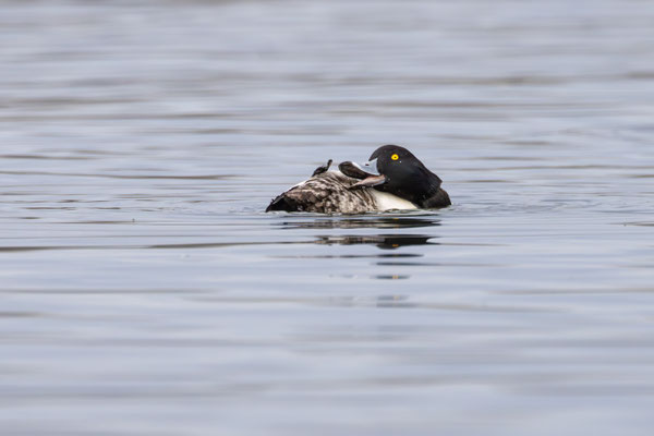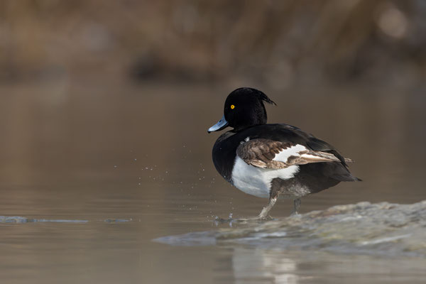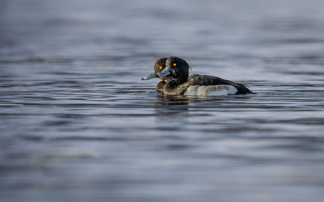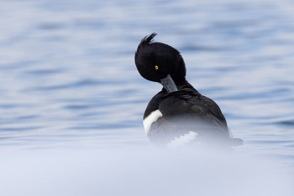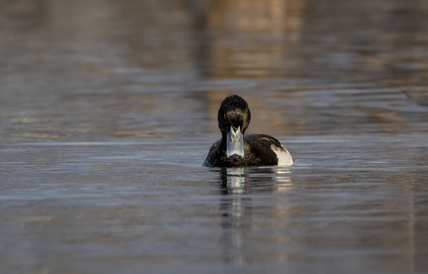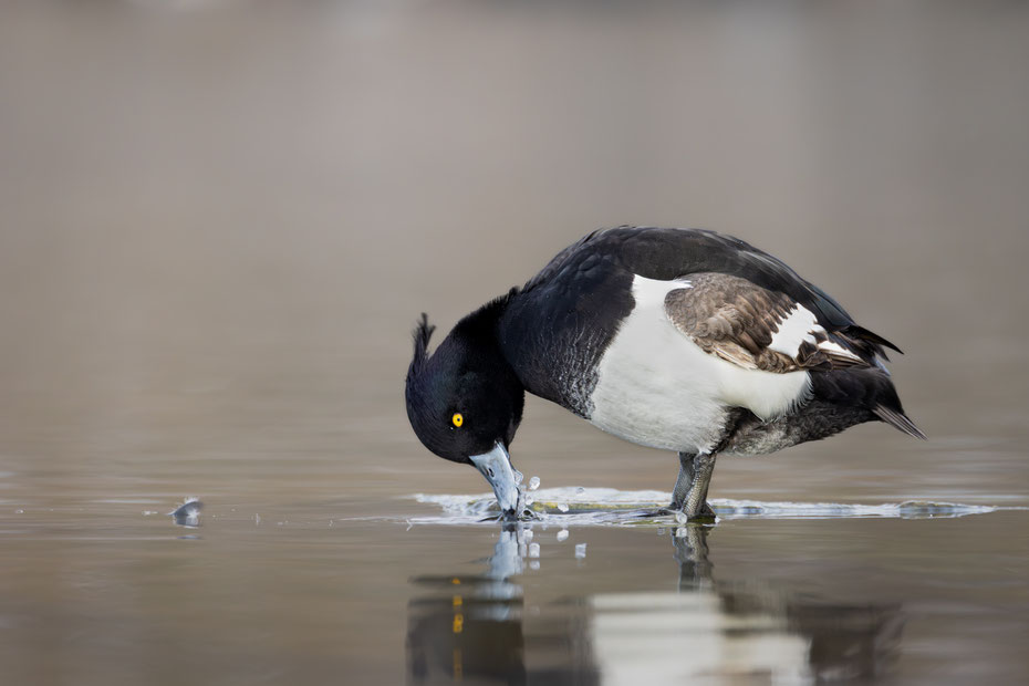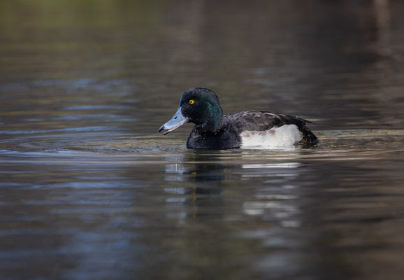 Die Reiherente ist heute im Winter die häufigste Entenart auf unseren Gewässern und hat stark von der Einwanderung der Wandermuschel profitiert, von der sie sich mit Vorliebe ernährt.