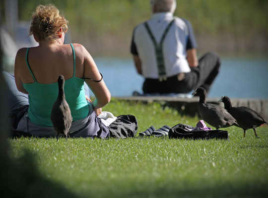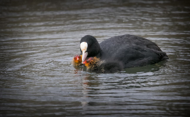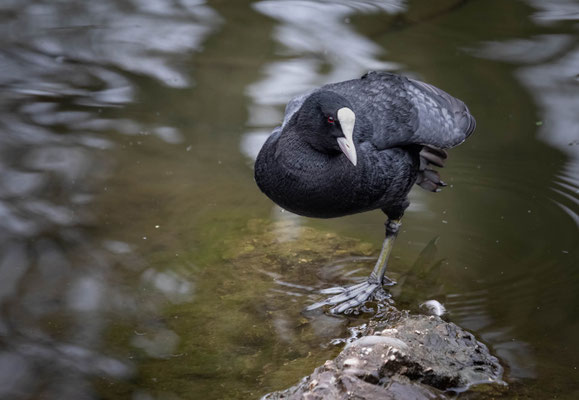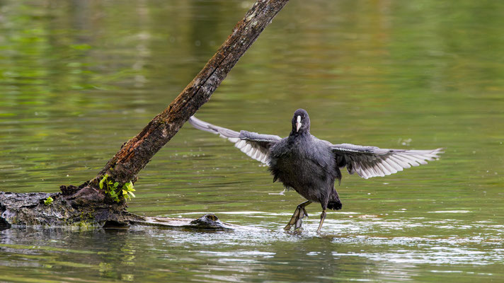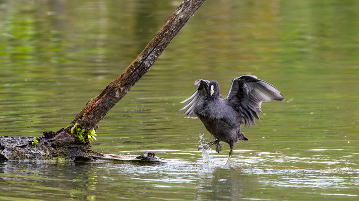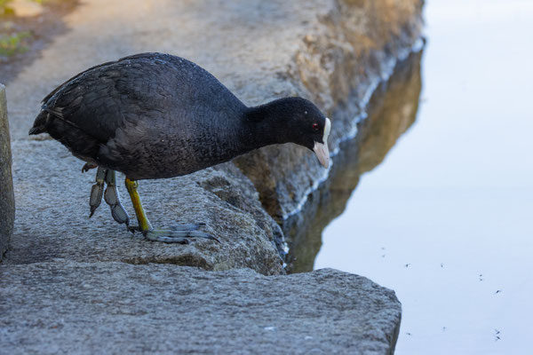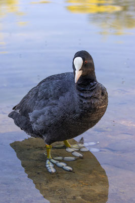 das Blässhuhn hat als einzige einheimische Rallenart an den Zehen Schwimmlappen ausgebildet.