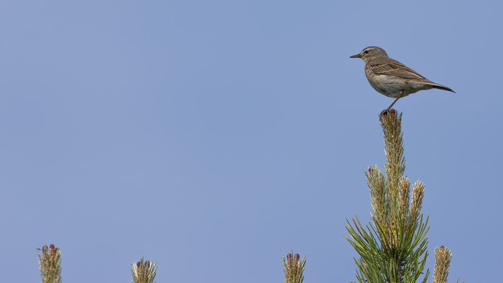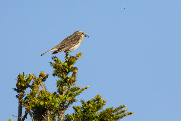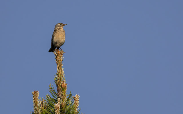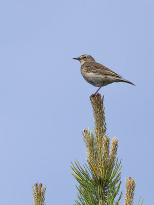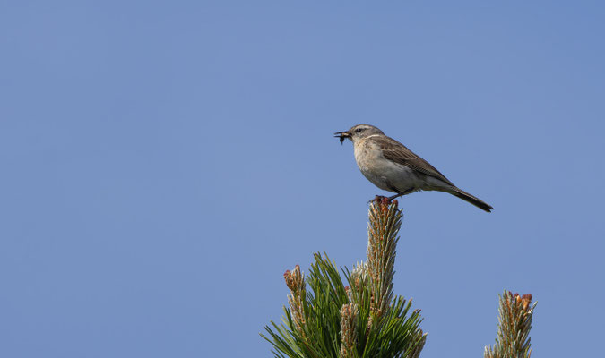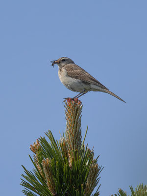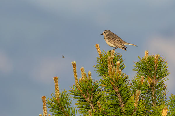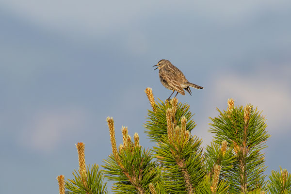Besonders auffällig ist seine Verhaltensweise, die man als Singflug bezeichnen kann. Der Bergpieper fliegt schräg hoch in die Luft und lässt sich nachher sehr langsam wieder herunter schweben. Währen-dessen singt er die ganze Zeit ‚dlitlitlitlit…‘. Im Winter trifft man ihn vor allem talwärts an Gewässern an.