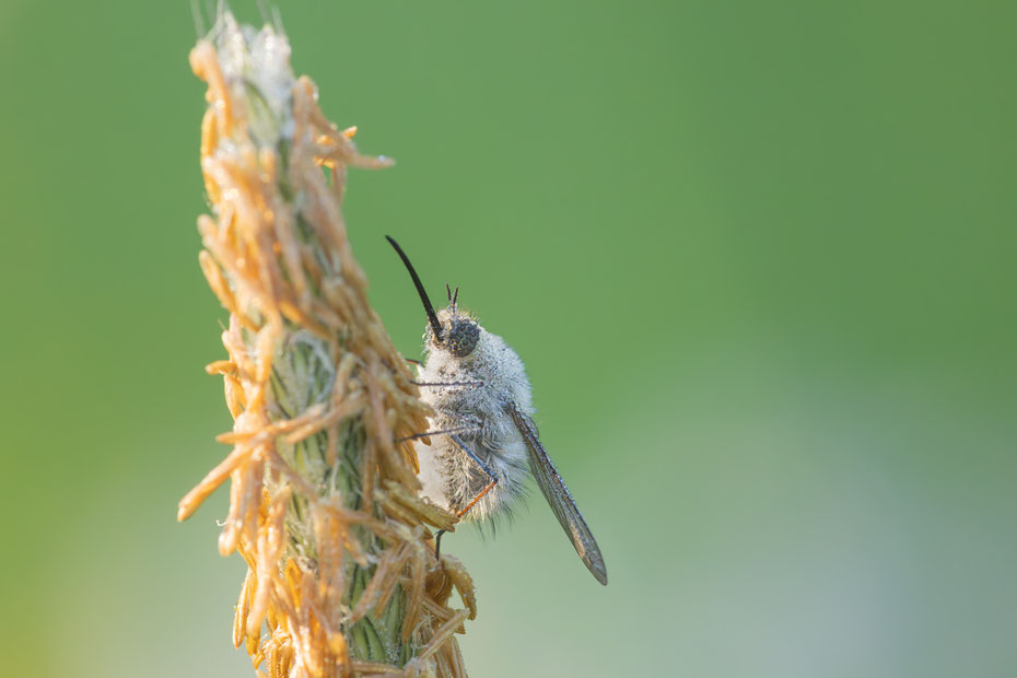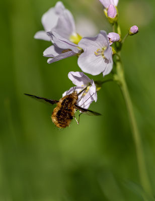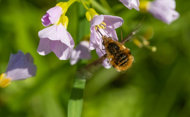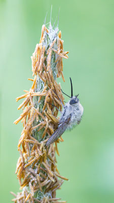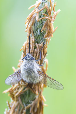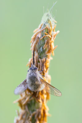 Die Wollschweber sind meist mittelgroße Fliegen,
